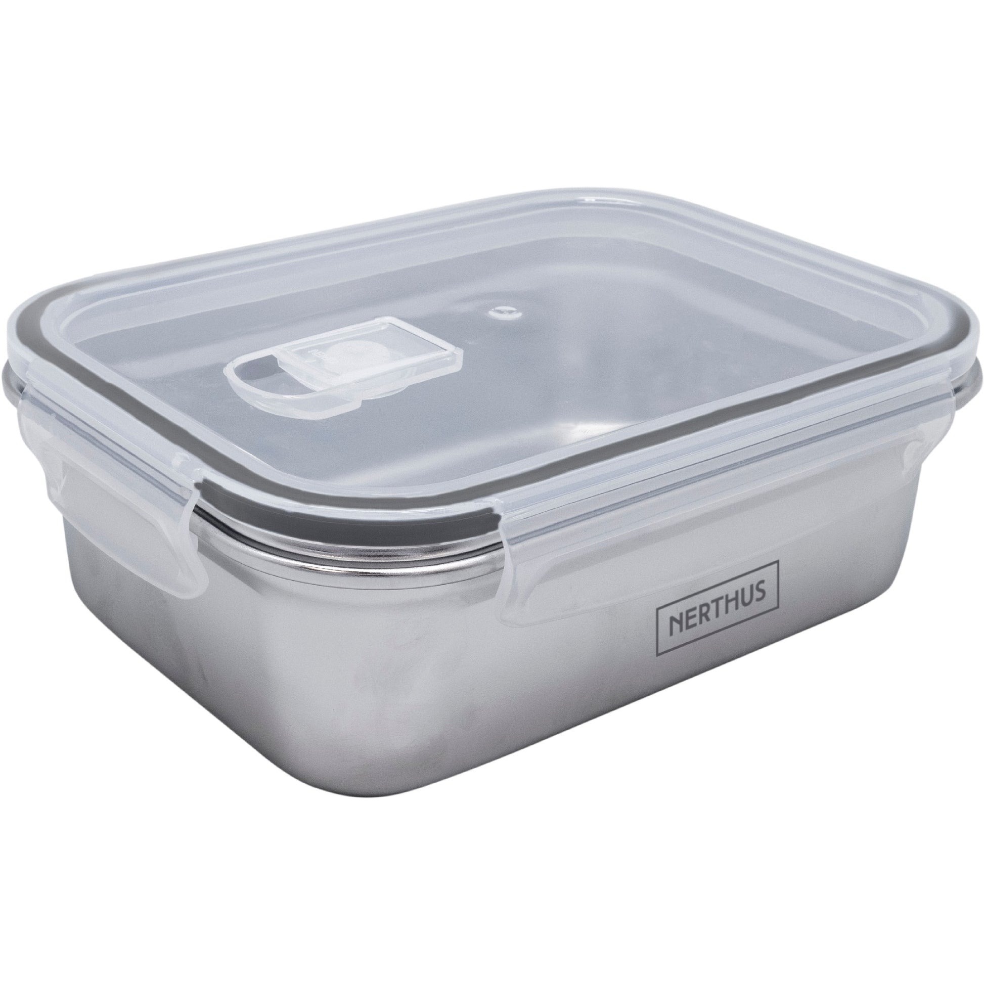 Conservez et transportez vos repas en toute sécurité avec le récipient hermétique rectangulaire en acier inoxydable allant au micro-ondes Nerthus , une option pratique et polyvalente pour toute cuisine.