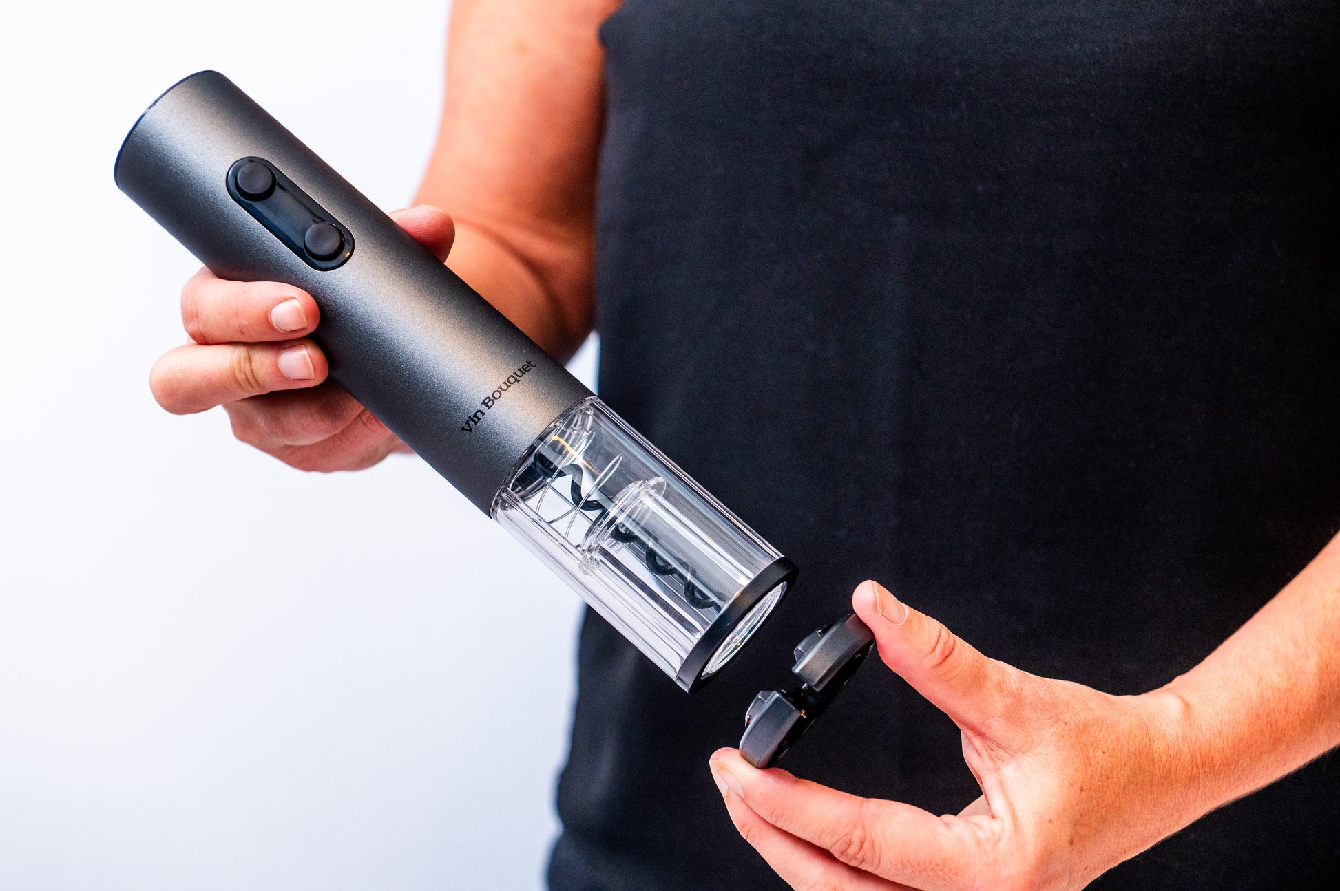 Le tire-bouchon électrique à piles Vin Bouquet est l'option pratique et abordable pour ceux qui cherchent à ouvrir leurs bouteilles de vin sans effort. Son fonctionnement simple à double bouton le rend idéal pour les personnes ayant une force limitée ou celles qui ne veulent tout simplement pas de complications. Il fonctionne avec 4 piles AA et est livré avec un coupe-capsule pour une expérience complète.