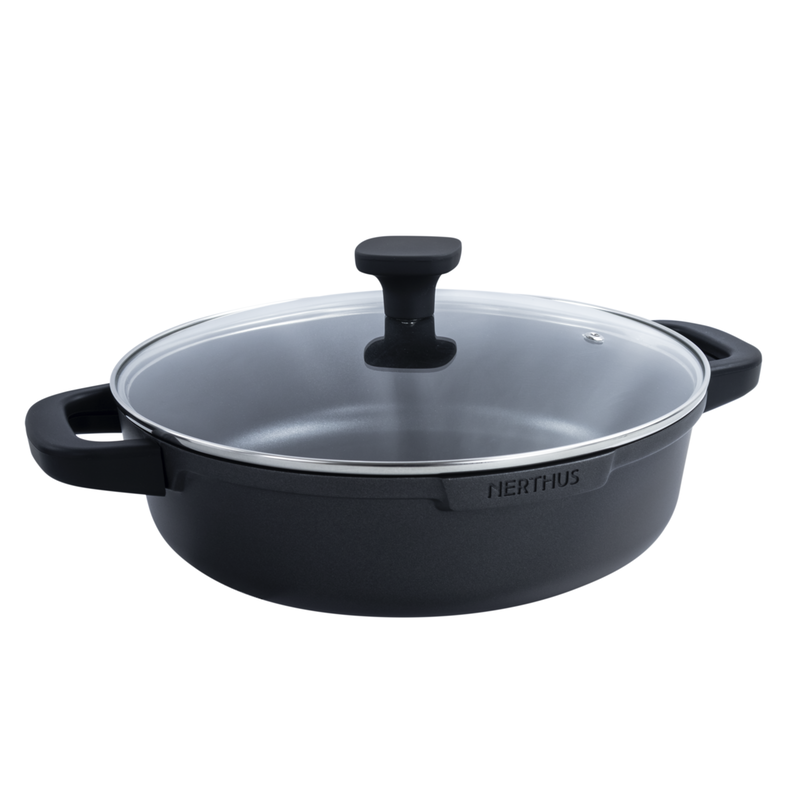 La Cacerola Baja de Aluminio Fundido de Nerthus está diseñada para preparar arroces, guisos, carnes y recetas al estilo tradicional con un rendimiento superior. Su revestimiento antiadherente Quantanium, libre de PFOA, aporta máxima durabilidad y evita que los alimentos se peguen, incluso con poco aceite.