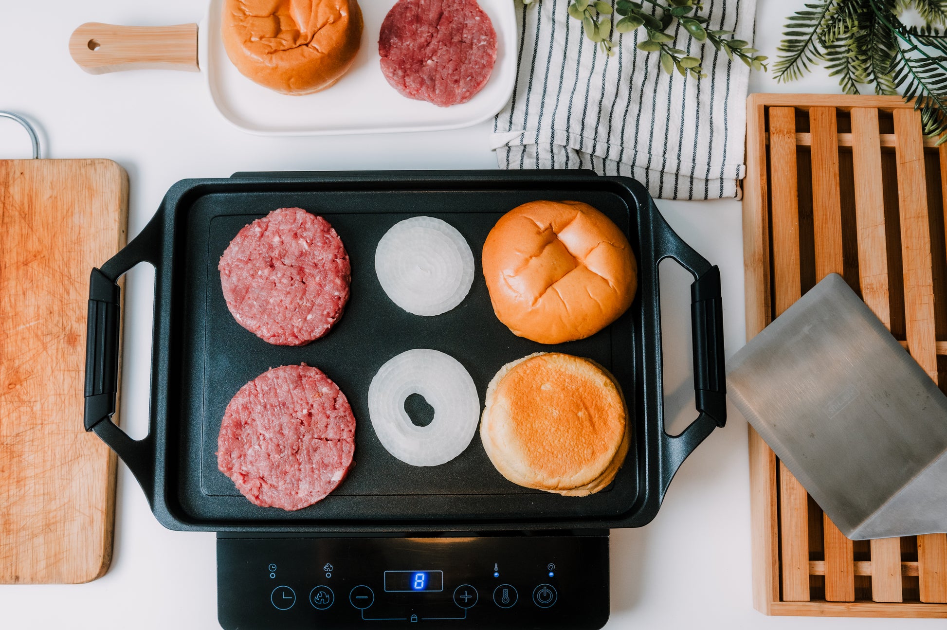 La Plancha Asador de Nerthus es ideal para cocinar carnes, pescados y verduras de manera saludable, logrando un dorado perfecto con menos aceite. Fabricada en aluminio fundido de alta calidad, incorpora recubrimiento antiadherente Quantanium, libre de PFOA y reforzado con titanio, que evita que los alimentos se peguen y garantiza máxima resistencia.
