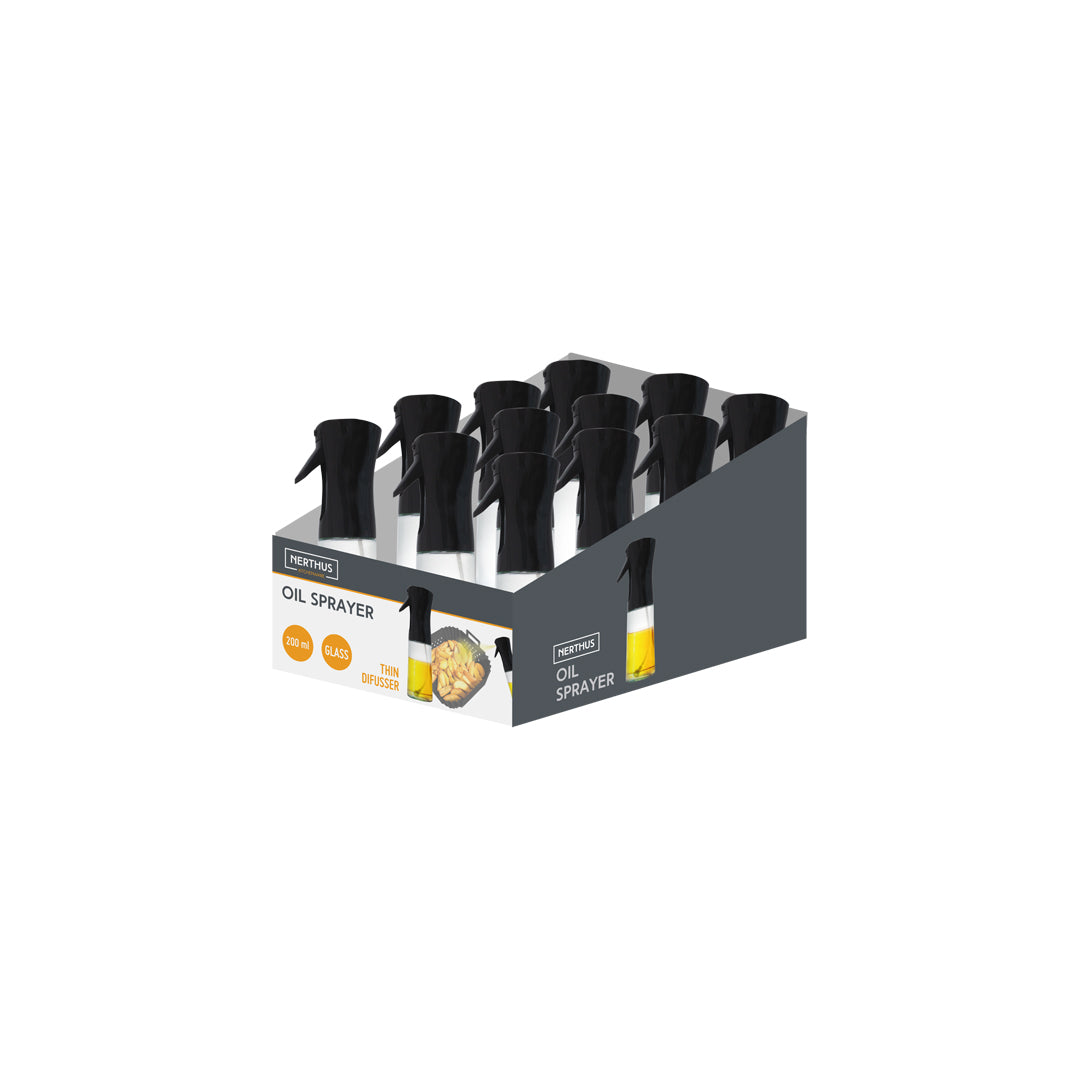 Con una capacidad de 200 ml, está fabricado en vidrio resistente con difusor de pulverización fina que reparte el aceite de manera uniforme sin excesos. Su diseño ergonómico permite un uso cómodo y controlado, evitando desperdicios y aportando un toque profesional a tus recetas.